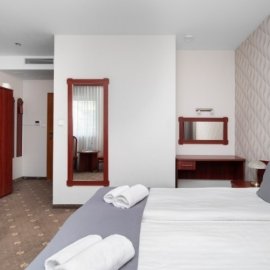 Idealne rozwiązanie dla tych, którzy cenią sobie prostotę, funkcjonalność i niezależność. Pokoje Comfort o powierzchni ok 17m2 wyposażone w wygodne łóżko o szerokości 160 cm lub dwóch łóżek o szerokości 90 cm, telewizor z płaskim ekranem oraz biurko do pracy.