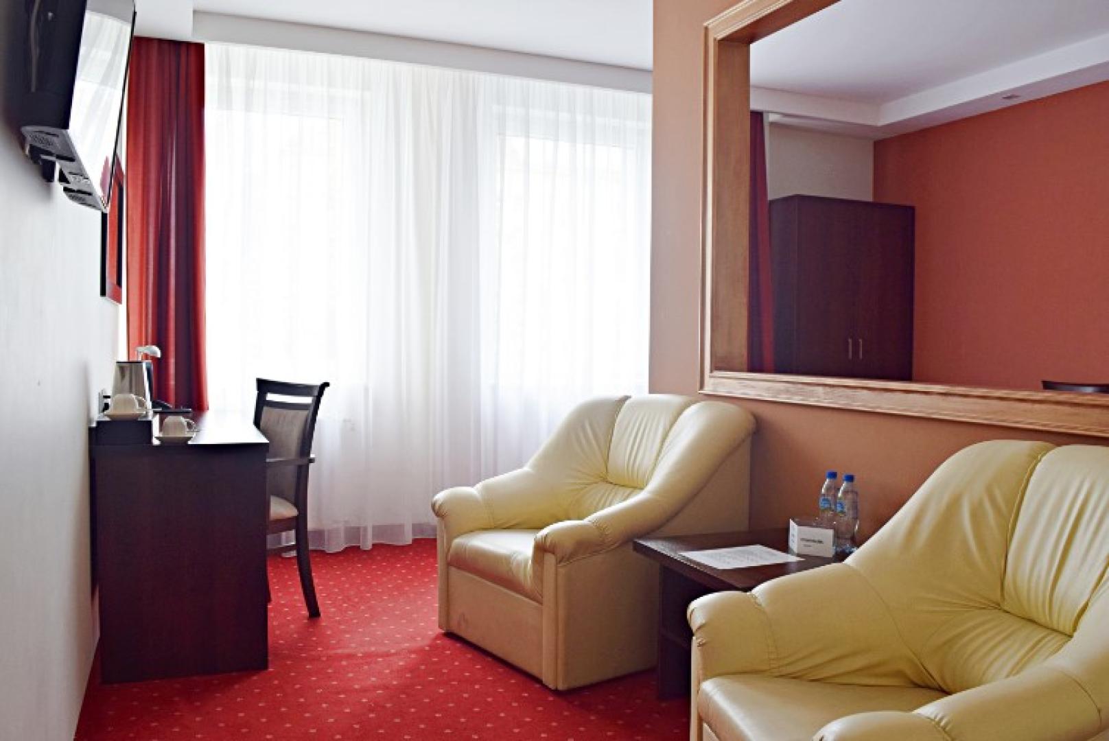 Pokój Delux+ z dodatkowym wyposażeniem w klimatyzację.